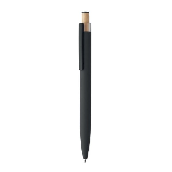 Aluminiowy długopis z recyklingu z bambusowym przyciskiem i dopasowanym kolorystycznie klipsem. Niebieski tusz.