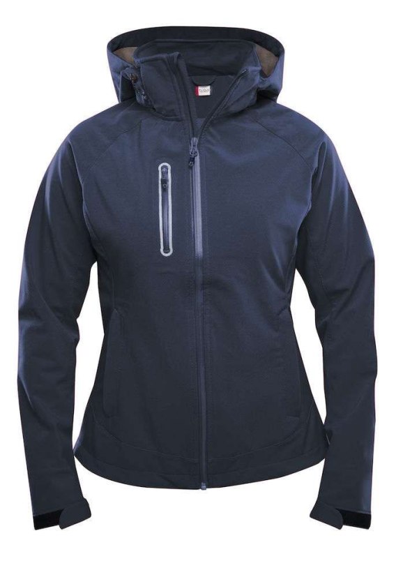 Damska kurtka typu Softshell z dwiema kieszeniami, odblaskowymi wypustkami wokół kieszeni przy klatce piersiowej. Dwie wewnętrzne kieszenie, odpinany kaptur, regulowane mankiety oraz sznurek ściągający na dole. Membrana TPU + polar. WP3000/MVP3000