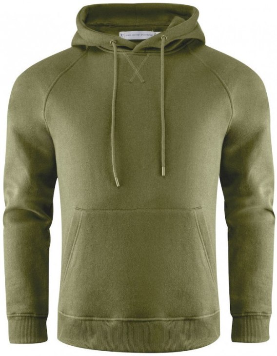 Bluza z kapturem z raglanowymi rękawami. Sznurki w kolorze ton w ton z gumowymi zakończeniami w kształcie kulki. Kieszeń kangurka z przodu. Wnętrze szczotkowane. Zakończenie mankietów i dolnej lamówki w formie ściągacza. Certyfikaty Oeko-Tex 100, OCS i GRS.