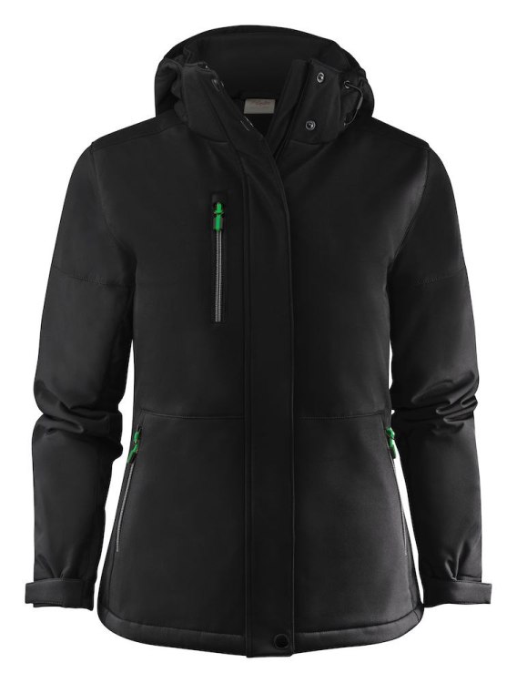 Ocieplany softshell z odpinanym kapturem. Zamek z przodu zakryty, rękawy przy mankietach regulowane na rzepy (Velcro) oraz elastyczny sznurek przy kapturze oraz spodzie kurtki. Dwie wewnętrzne kieszenie na zamek. Odblaskowe lamówki z tyłu w dolnej części. Metka przy karku ma możliwość oderwania, osobno metka z informacją o rozmiarze. Chip do pralni zaszyty wewnątrz po lewej stronie. Pullery zamków w kontrastowych kolorach. Certyfikat OEKO-TEX. Kompostowalne opakowanie.