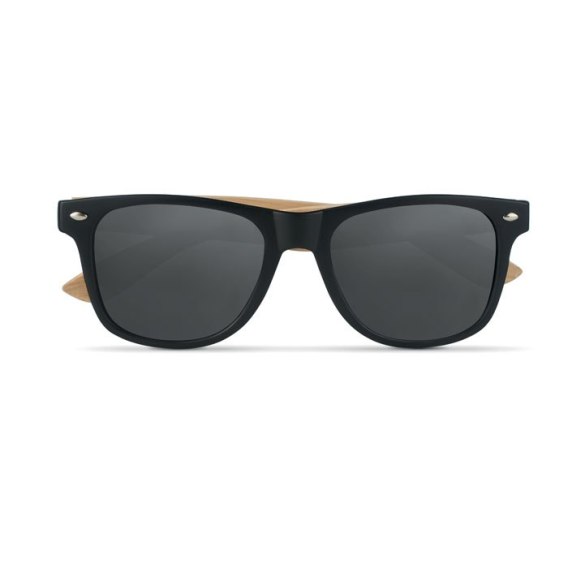 Okulary przeciwsłoneczne w stylu vintage z bambusowymi zausznikami i ramką PC. Kolorowe soczewki. Ochrona UV400. Bambus jest produktem naturalnym, dlatego mogą wystąpić nieznaczne różnice w kolorze, wzorze i rozmiarze.