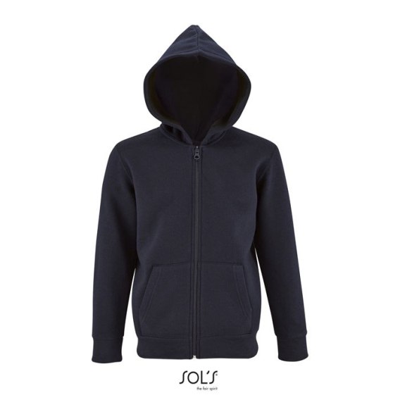 SOL'S STONE Dziecięca bluza z kapturem i zamkiem błyskawicznym, kieszenią typu kangur z przodu, mankietami i lamówką ze ściągaczem. Bez etykiety. Szczegóły tkaniny: 260g / m² , 50% bawełna, 50% poliester. Rozmiary - 6 lat: 106-116cm (XL), 8 lat: 118-128cm (XXL), 10 lat: 130-140cm (3XL), 12 lat: 142-152cm (4XL)