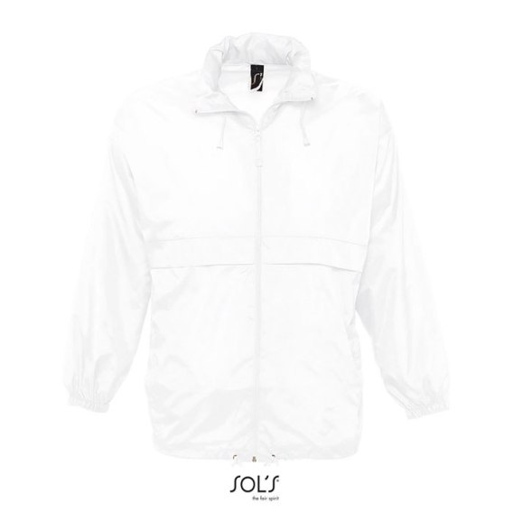 SOL'S SURF Wiatrówka unisex z zamkiem błyskawicznym. Jedna z najbardziej opłacalnych wiatrówek na rynku. Wiatroodporna i wodoodporna. Dwie zapinane kieszenie, kołnierz zapinany na zamek z ukrytym w środku kapturem. Sznurek u dołu, elastyczne mankiety, otwory wentylacyjne. Detale tkaniny: 100% nylon 210T 210 g / m², wodoodporny.