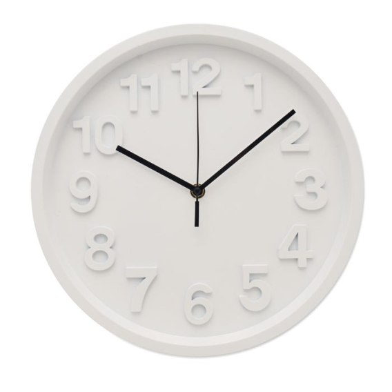 Zegar ścienny z PP z aluminiowymi wskazówkami i cichym mechanizmem. Wymaga 1 baterii AA (brak w zestawie).